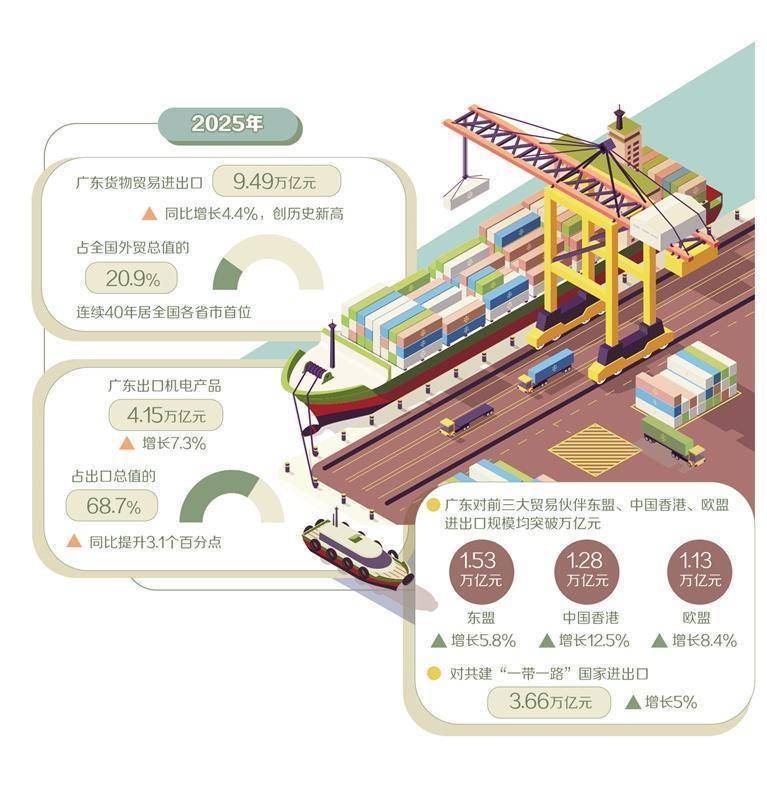 原标题:2025年进出口达9.49万亿元,创历史新高——广东外贸凭产业韧性持续领跑